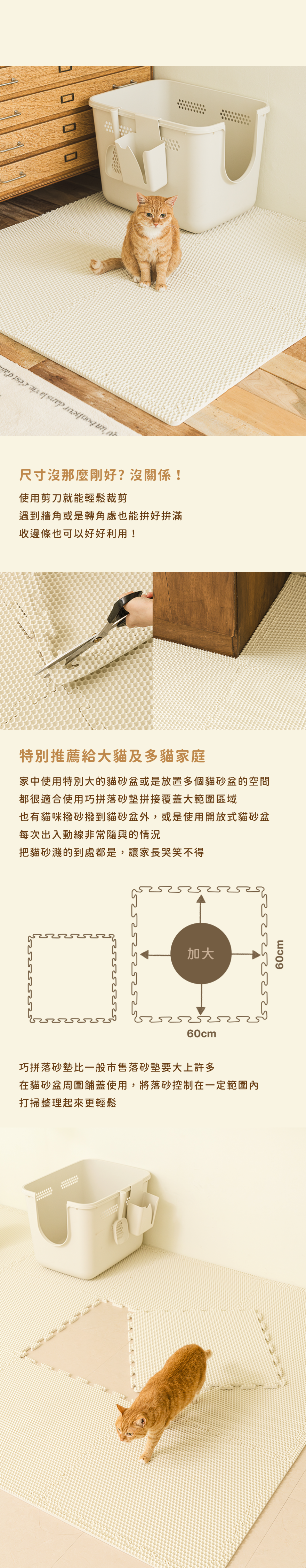 ⊹ 自由拼接剪裁,尺寸不受限,接砂零死角