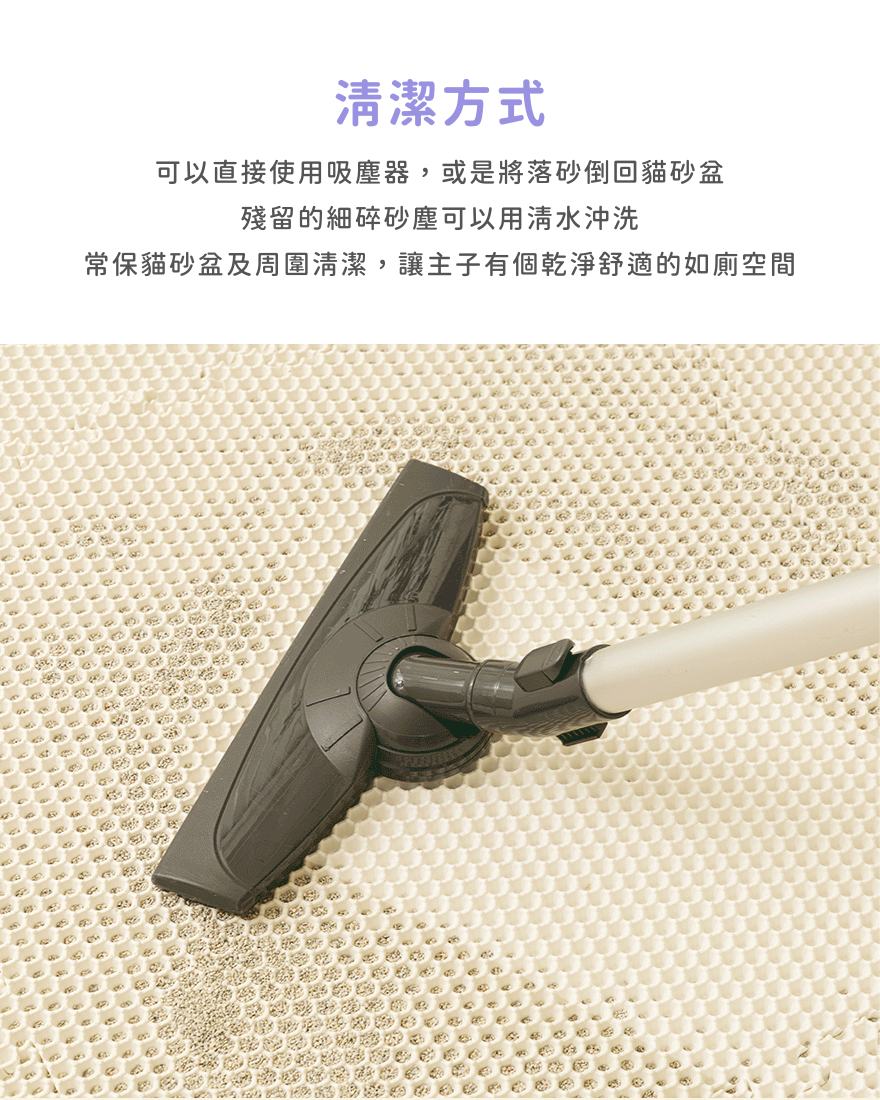 ⊹ 可吸塵器、水洗,清潔不費力!