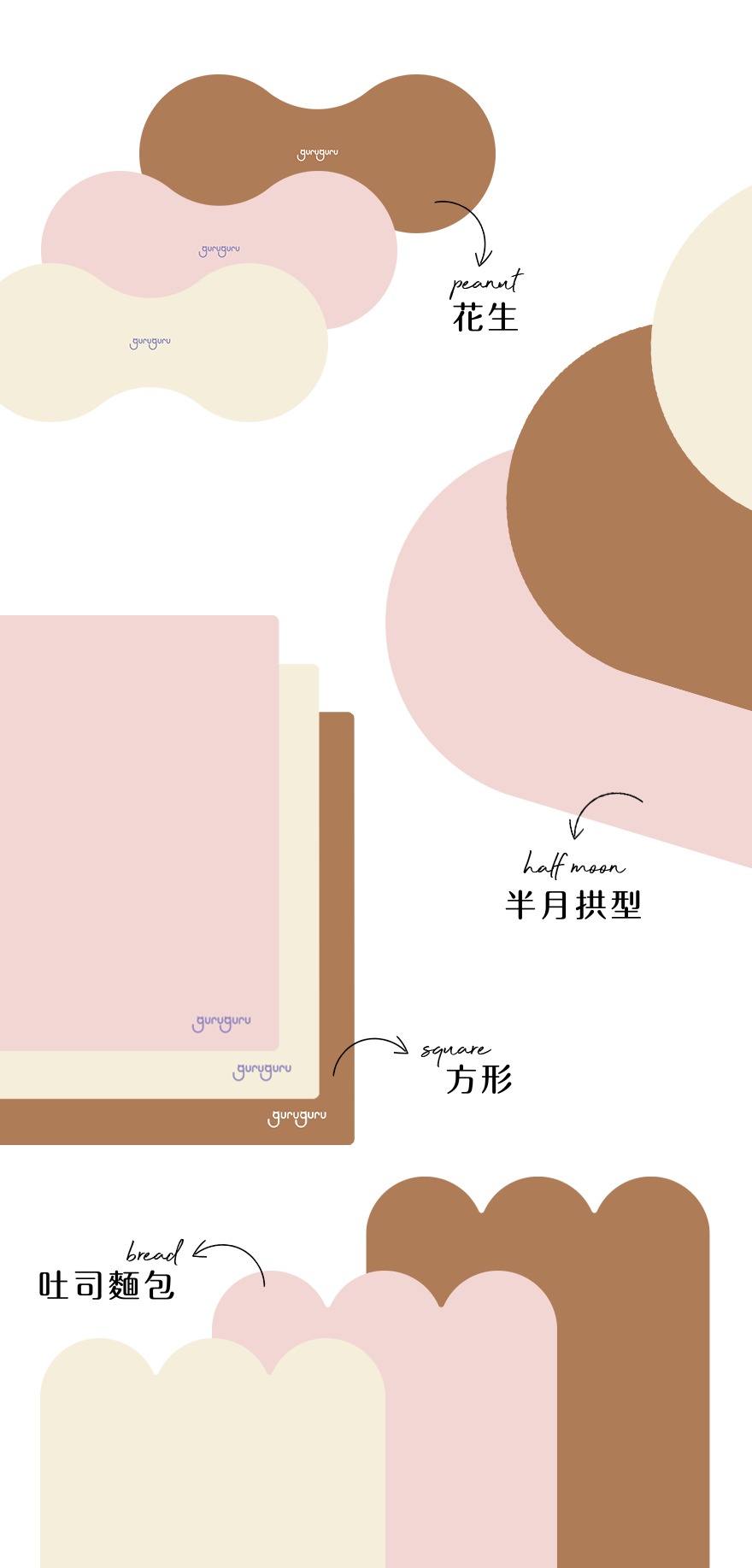 方形:60x70cm 吐司麵包:60x70cm 半月拱型:68x100cm 花生:24x56cm |