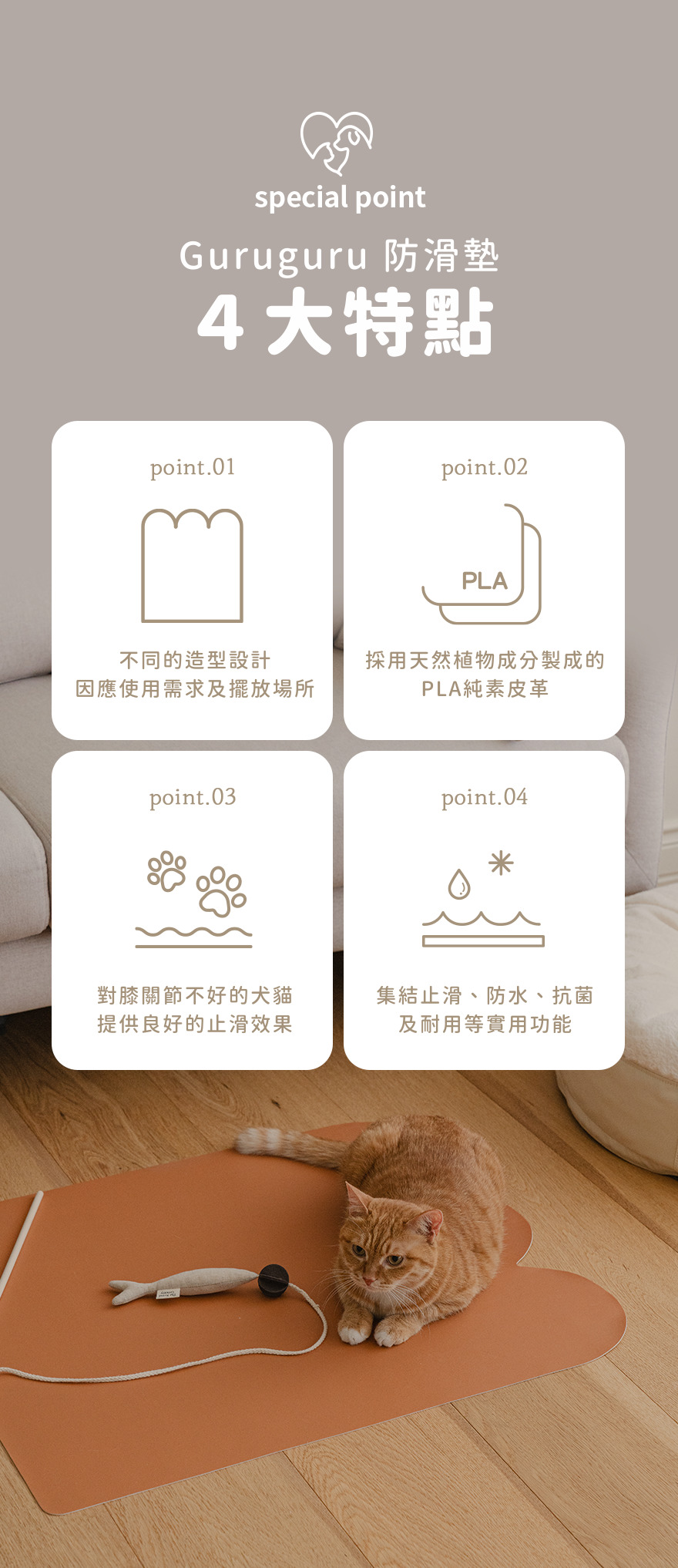 | 清潔方式 | • 首次使用前請先用乾淨濕布清潔並擦乾,待其完全乾燥後再放置地板使用。 • 使用乾/濕布擦淨,或以清水沖洗後擦乾;請勿機洗。 • 難清潔髒污可以溫水(30°C)用牙刷搭配中性清潔劑或肥皂輕輕刷洗。 • 定期清潔防滑墊並讓放置處地板通風,防止防滑墊和地板之間潮濕凝結水分。 • 請勿使用酒精擦拭。 |