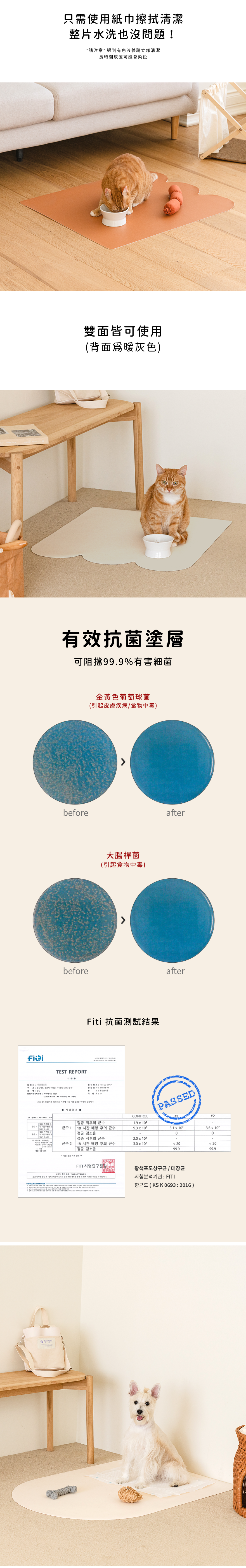 | 注意事項 | • 若長時間接觸易褪色的衣物(如牛仔褲)或髒汙如食物(咖啡、水果等) 、大小便等,長時間放置未清潔,可能會造成染色情況,建議盡快清潔。 • 由於防滑材質的特性,可能會附著灰塵或異物。 • 請勿靠近火源或長時間放置高溫環境。若暴露在高溫下,產品的形狀和材質 可能會變質或變形。 • 請勿在防滑墊上放置重物,若長時間將重物或家具放在上面,有可能造成產品塌陷 ,無法恢復原有厚度及彈性,或造成表面損壞。 • 請避免讓本產品接觸尖銳或粗糙物品,以免刮傷損壞。 • 防滑墊可能會因包裝或運送而稍有擠壓捲起,使用一段時間便會恢復正常。 • 本產品之使用壽命可能會因使用方式和環境差異有所不同,經久使用可能會變色或磨損 ;使用中若出現裂縫、脫落等現象發生,建議立即更換。 • 本產品使用天然材質製作,製作過程可能會造成地墊表面有些微小黑點或細微刮痕,屬正常現象。 • 請勿使用油性筆、蠟筆或彩色鉛筆等畫具塗鴉地墊,可能會無法去除。 • 本產品非食品,也非耐咬或啃咬玩具,請注意是否有異物吞食的情況。 • 由於顯示器種類、色調亮度皆存在差異,產品圖片與實品可能會有些許色差。 |