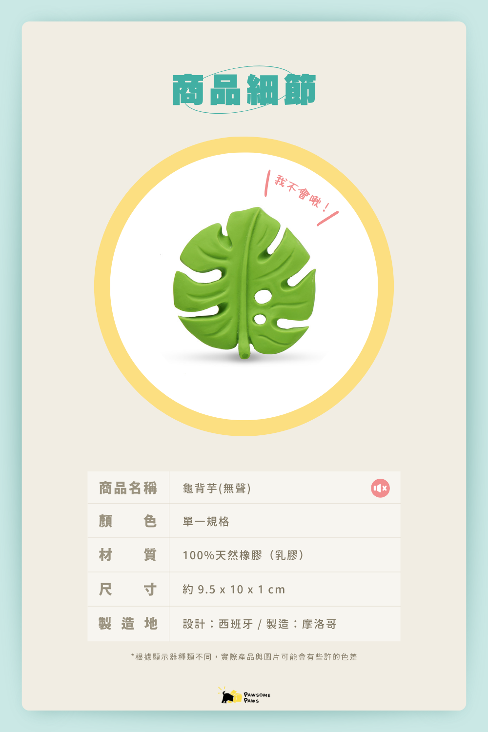 《 Lanco 》天然無毒橡膠玩具|不會啾系列【龜背芋】