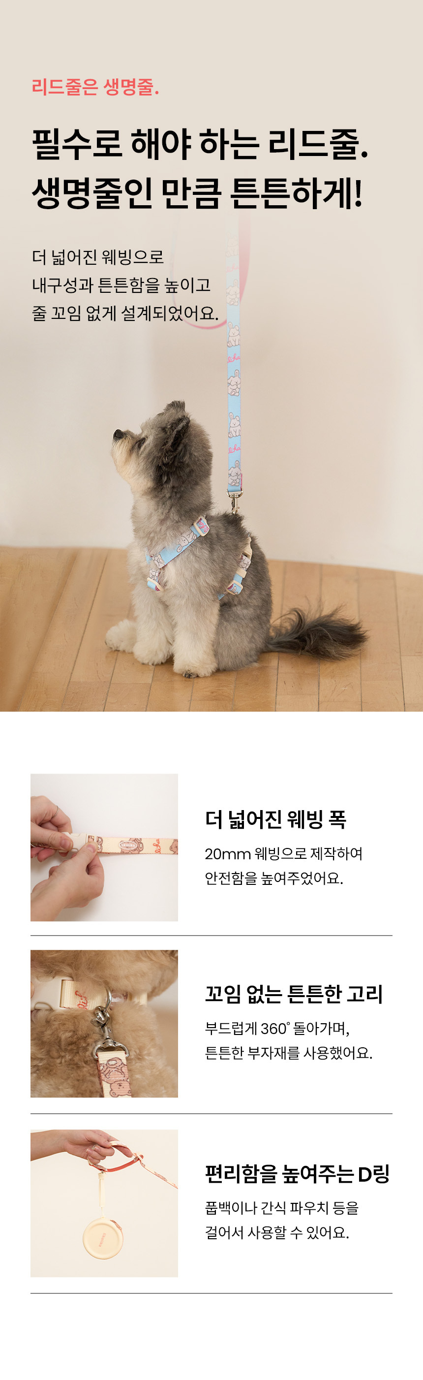 • 請避免接觸到鋒利的器具摩擦牽繩,導致牽繩損壞 • 請避免毛孩啃咬牽繩,以避免產品損壞 • 可手洗清潔,並置於陰涼通風處晾乾 • 產品不使用時,請置放於室內陰涼處,請勿長期曝曬 |