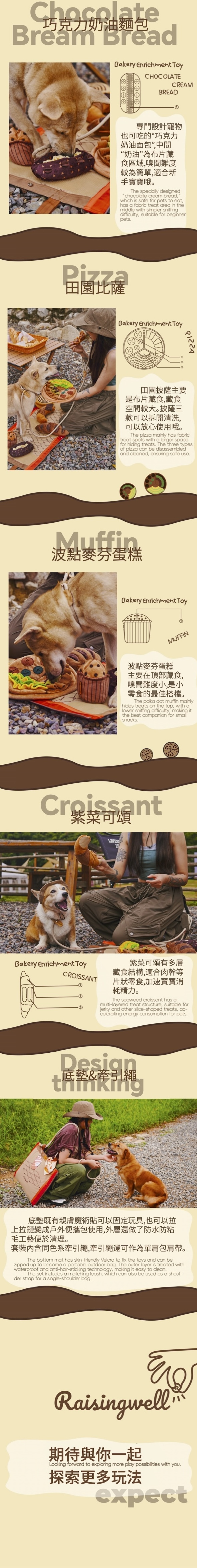 波點馬芬蛋糕12cmx12cm;大法棍10cmx28cmx8cm 肉桂捲15cmx15cm;可頌12cmx22cm;披薩26cmx26cmx3cm 巧克力麵包22cmx12cm |