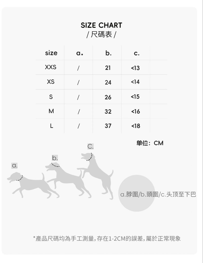 | 注意事項 | • 此商品非玩具,請勿讓毛孩啃咬、玩耍。 • 如有誤食情況發生,請立即就醫。 • 毛孩配戴使用時請家長務必在旁監督,避免誤食商品及其配件。 • 未使用時請妥善收納保存,避免嬰幼兒及毛孩獨自取得。 |