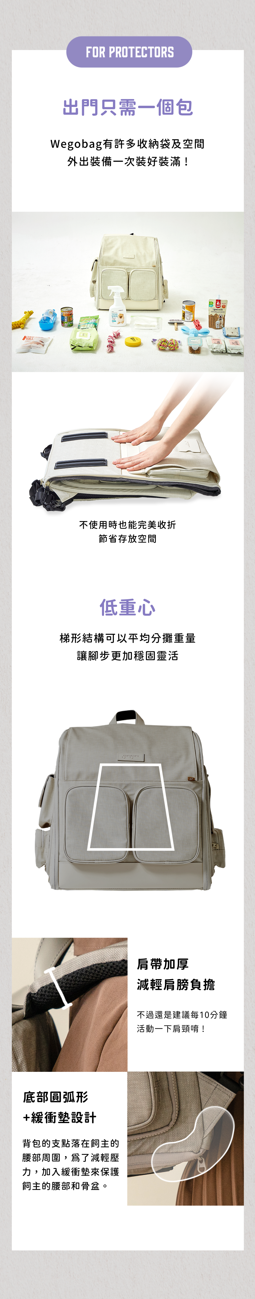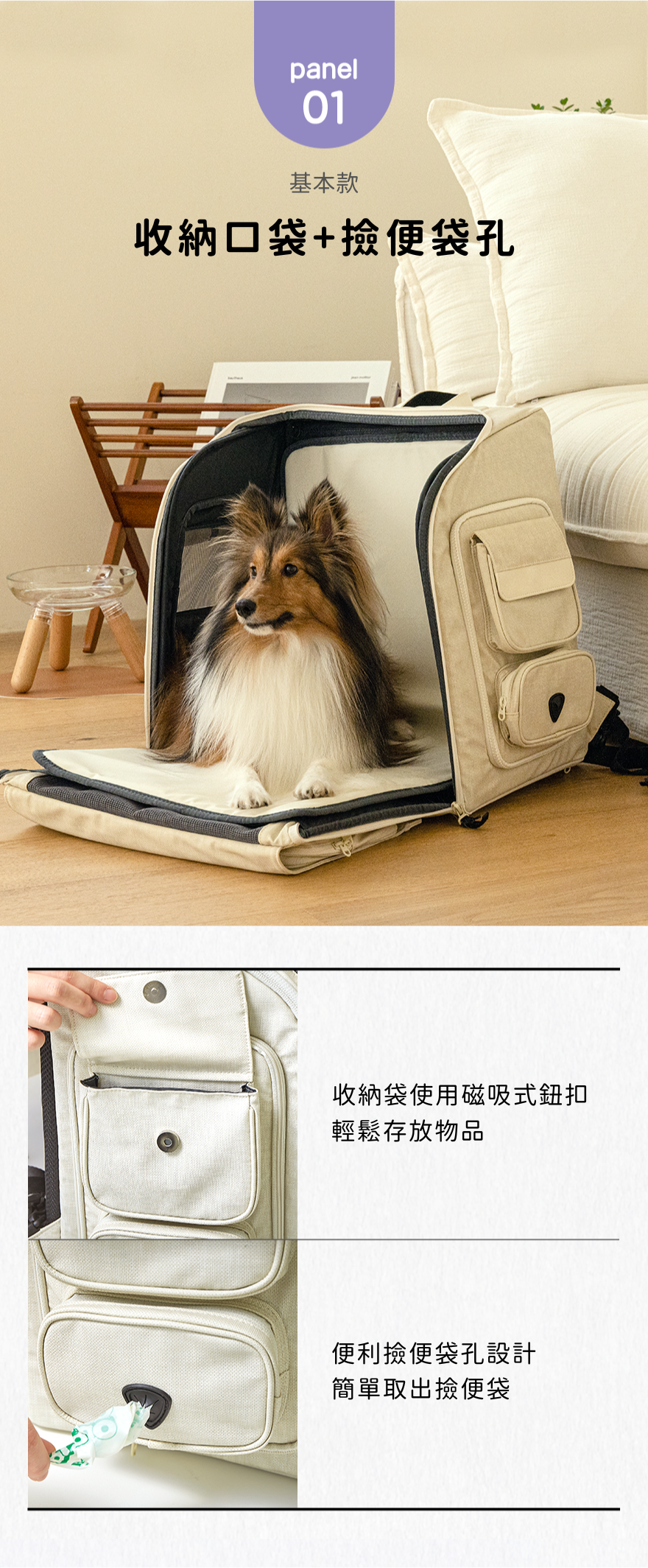 • 多處拉鍊收納空間(狗狗有專用撿便袋收納袋!)