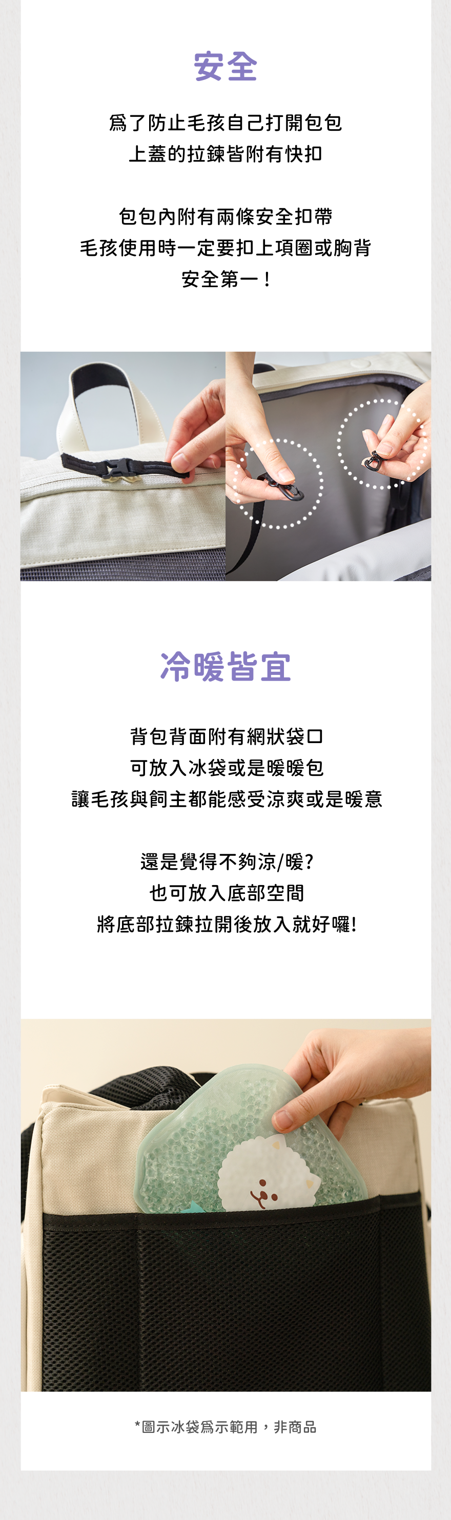 • 左右邊拉鍊設計,附扣子防掙脫,讓毛孩更安全